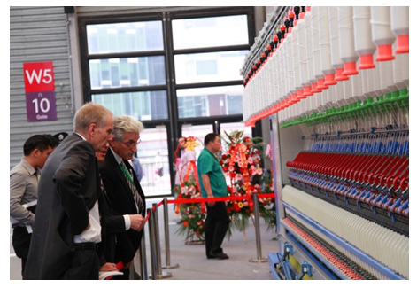 本報訊(記者 高華斌)本屆展會上,同和紡機公司重點展出了TH578J緊密紡自動落紗細紗機、TH498智能、高速集體落紗粗紗機等設備。