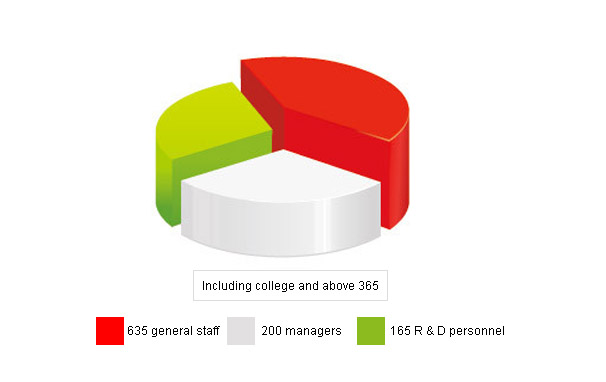 The company currently employs more than 1,000 people, with college education, and technical personnel 360 people, 165 people engaged in research and development personnel.